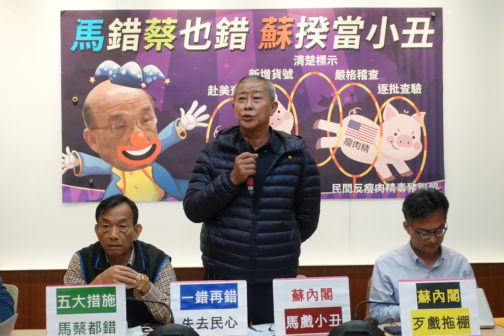 「萊豬就是毒豬!」醫師蘇偉碩說,萊劑不是食品,根本不該殘存於肉品,昨天前中研院院長李遠哲說「在標準以下吃了,對健康影響不大」,但是也沒否認「萊劑存在健康風險」,他呼籲蔡政府應該廢止行政命令,不要讓有毒食物流入台灣。蘇偉碩也質疑,政府為了進口萊豬,花大錢要補助豬農和編稽查經費,但也無法防堵,只是「勞民傷財」而已,最好的做法就是維持現狀,在邊境就「禁止進口」。