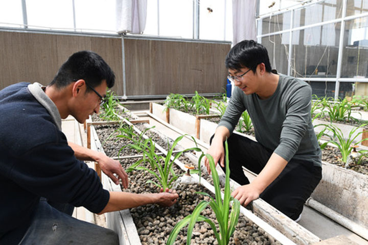 李富春種出了熱帶水果,而幾公里之外,從西安科技大學畢業的周磊和妻子李麗麗,利用所學專業優勢,建起溫室大棚,搞起了「魚菜共生」循環生態農業。「養魚不換水、種菜不施肥」是這一模式的核心「賣點」,用養魚的水種菜,魚進食排泄後,由微生物分解並提供養分,蔬菜吸收養分並淨化水體。「實驗完全從零開始,比如魚和菜的配比,就經歷了多次試驗,失敗了再重來,直到成功。」周磊說。