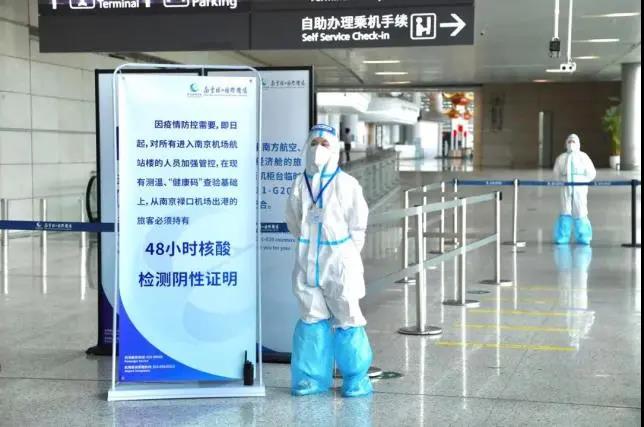 疫情發生後,南京祿口機場嚴格查驗從南京機場出港旅客的48小時核酸陰性證明。(圖片來源;南京祿口機場微信)