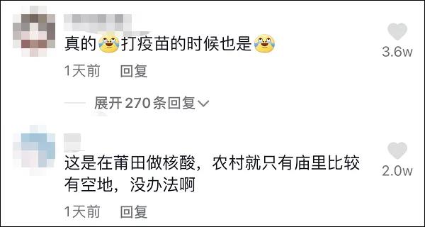 20日,「福建特色的核酸檢測點」上了熱搜後,不少網紅對這種方式點讚,@丁香園 認為,這種信仰、寄託與現代的策略防疫相結合的方式,非常實用主義、非常科學、非常酷。