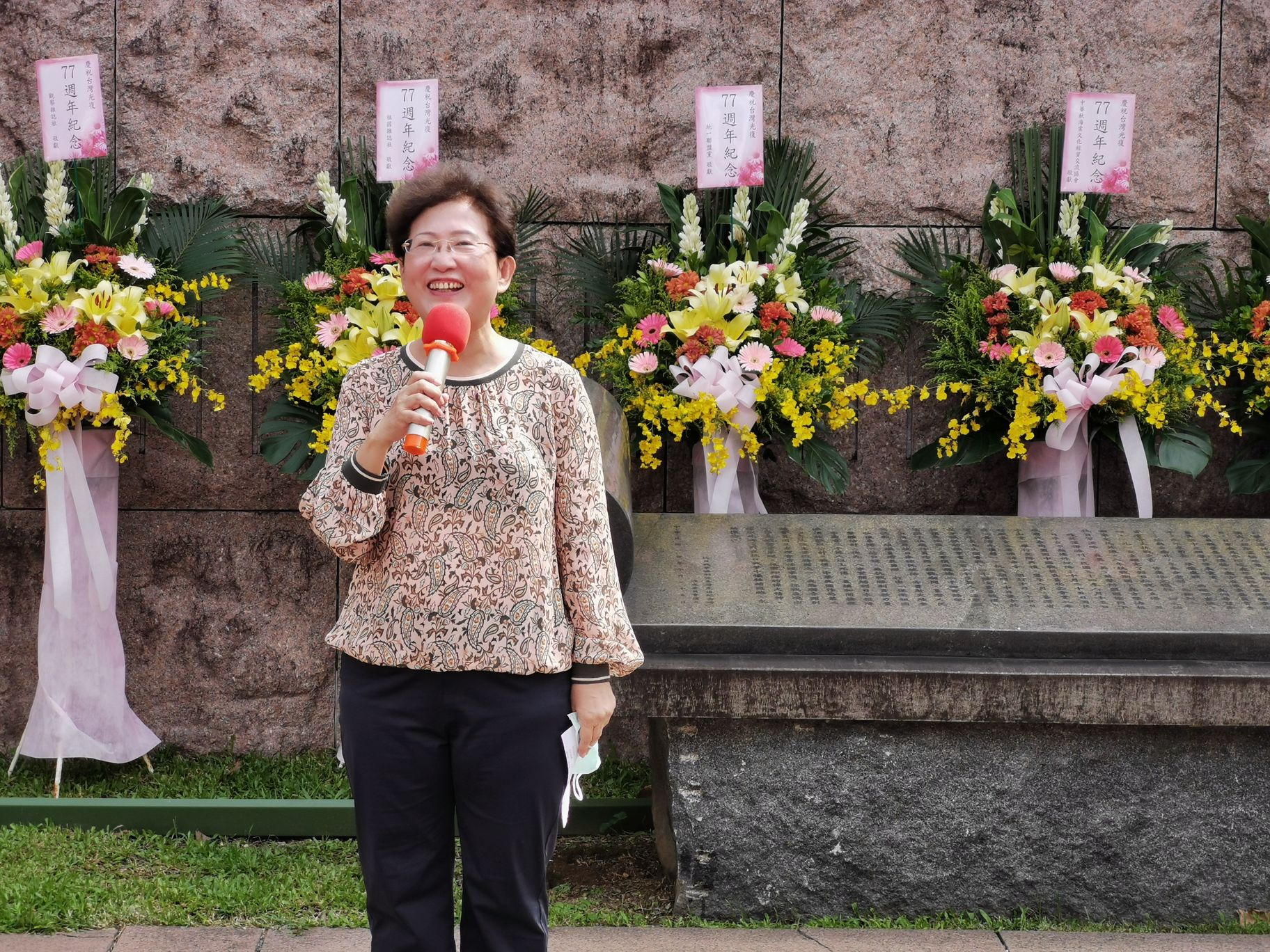 為慶祝台灣光復77周年,10月25日上午10時,台灣各界代表在台北市中山堂「抗日戰爭勝利暨臺灣光復紀念碑」前舉行紀念活動,藉此表達對英勇抗日先烈緬懷與紀念台灣光復。