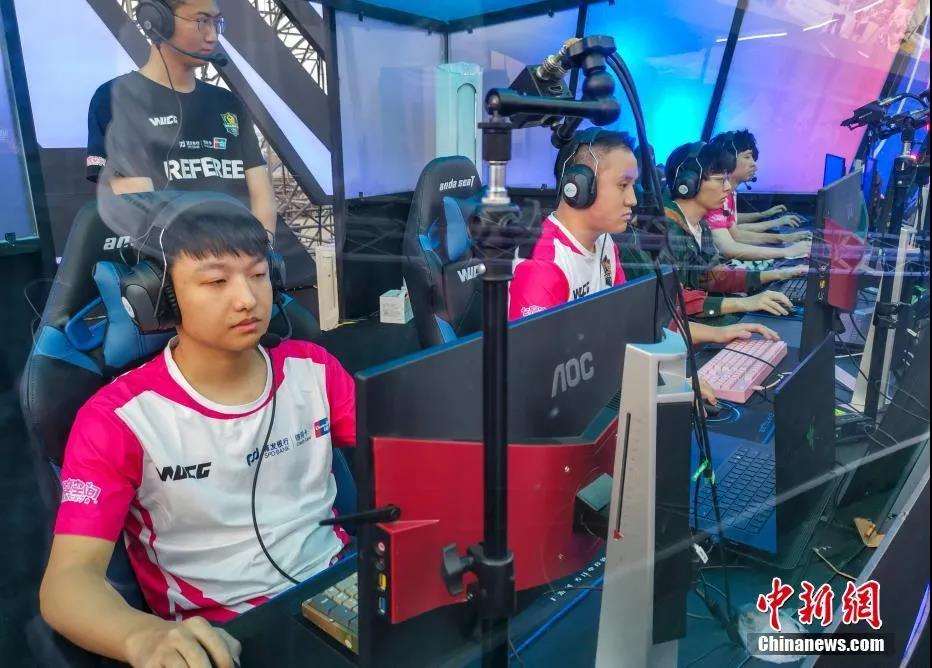 WCG2019世界總決賽於西安啟幕。圖為參賽隊伍激烈角逐。(圖/中新社,張遠攝)侯旭介紹:「我們也不叫勸退,我們叫做給他樹立正確的互聯網的價值觀,或者電競的價值觀,讓他正確認識到電子競技這個行業,然後他自己再來做選擇。」
