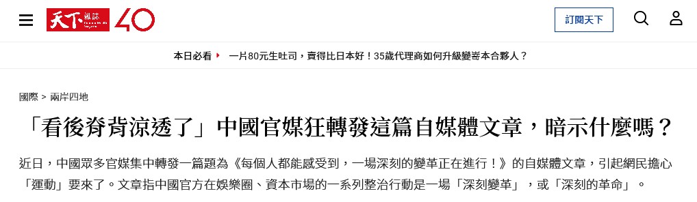 大陸官媒廣傳此文:每個人都能感受到,一場深刻的變革正在進行!