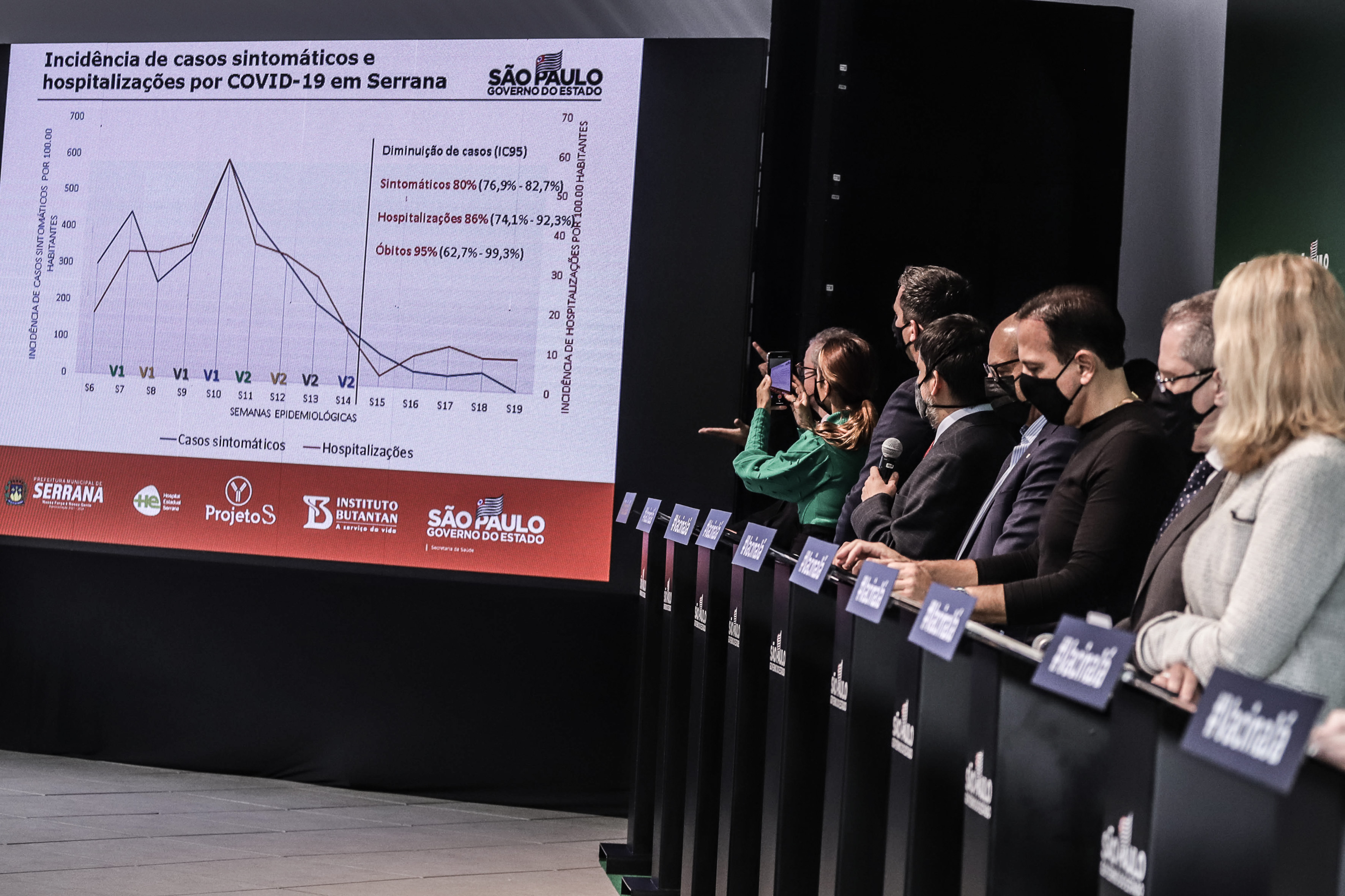 5月31日,巴西聖保羅州政府官員和布坦坦研究所研究人員在巴西聖保羅州出席新聞發佈會。(圖/新華社)智利衛生部5月中旬更新了科興疫苗在該國「真實世界研究」中的保護效果:該疫苗在第二劑接種14天後,預防有症狀感染的有效率為65.3%,預防住院治療的有效率為87%,預防進入重症監護病房的有效率為90.3%,預防感染所致死亡的有效率為86%。主持這項研究的智利衛生部顧問阿勞斯說,經過數月跟蹤,目前積累的數據是「可靠的和積極的」,證明了儘管存在變異新冠病毒流行,科興疫苗仍顯示了較好的保護效果。