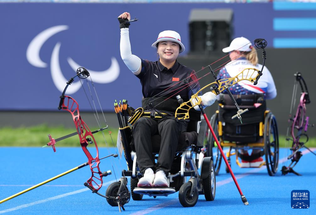 8月29日,蔣裕燕在獲勝後向現場觀眾致意。圖源:新華社,熊琦 攝8月31日,在巴黎帕奧會射箭女子個人W1級金牌爭奪賽中,中國選手陳敏儀戰勝捷克選手普爾塔爾·穆西洛娃,奪得金牌。