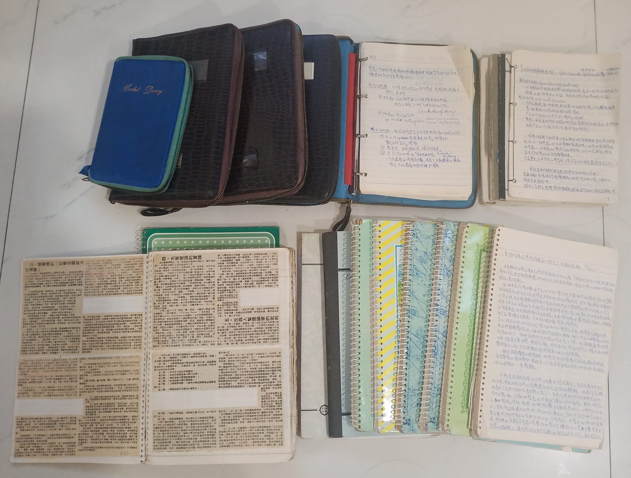 此外,與爸媽信件收藏在一處的,還包括2本爸爸獄中剪報筆記(請見〈老同學的自修課〉),9本讀書摘記,以及紀錄爸爸獄中所思所想的7本獄中筆記。