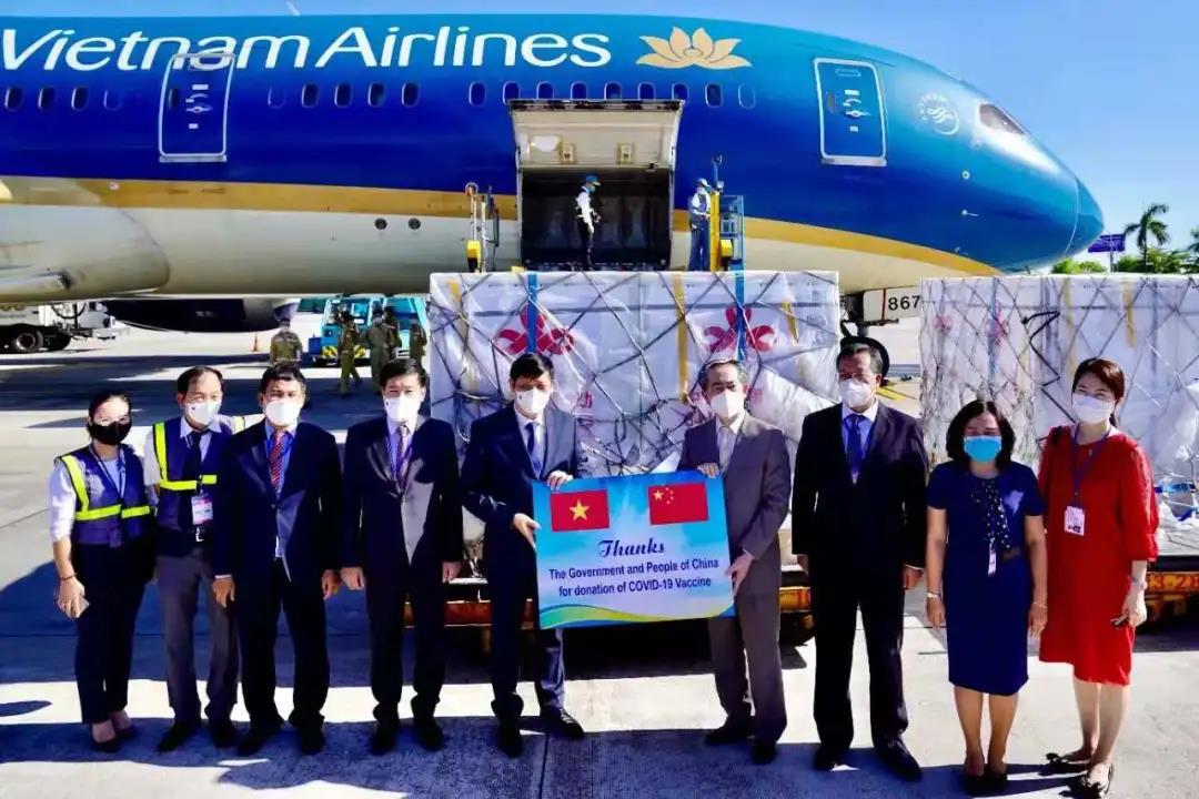 2021年「春苗行動」,中國援助的疫苗運抵越南首都河內。圖源:中國駐越南大使館公眾號