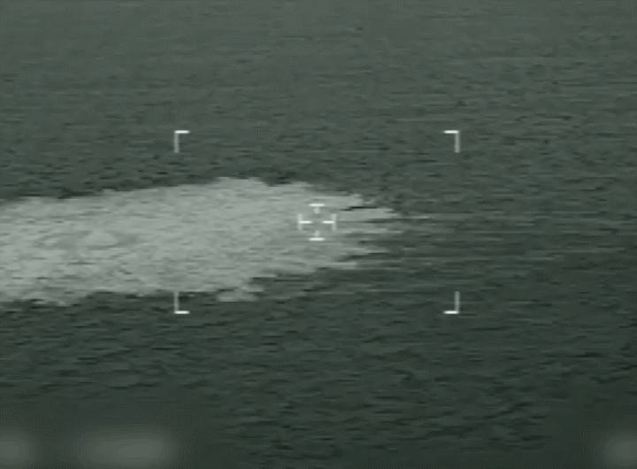 這張丹麥國防部2022年9月27日發布的航拍照片顯示的是一處「北溪」天然氣管道洩漏點。圖源:新華社,丹麥國防部 提供