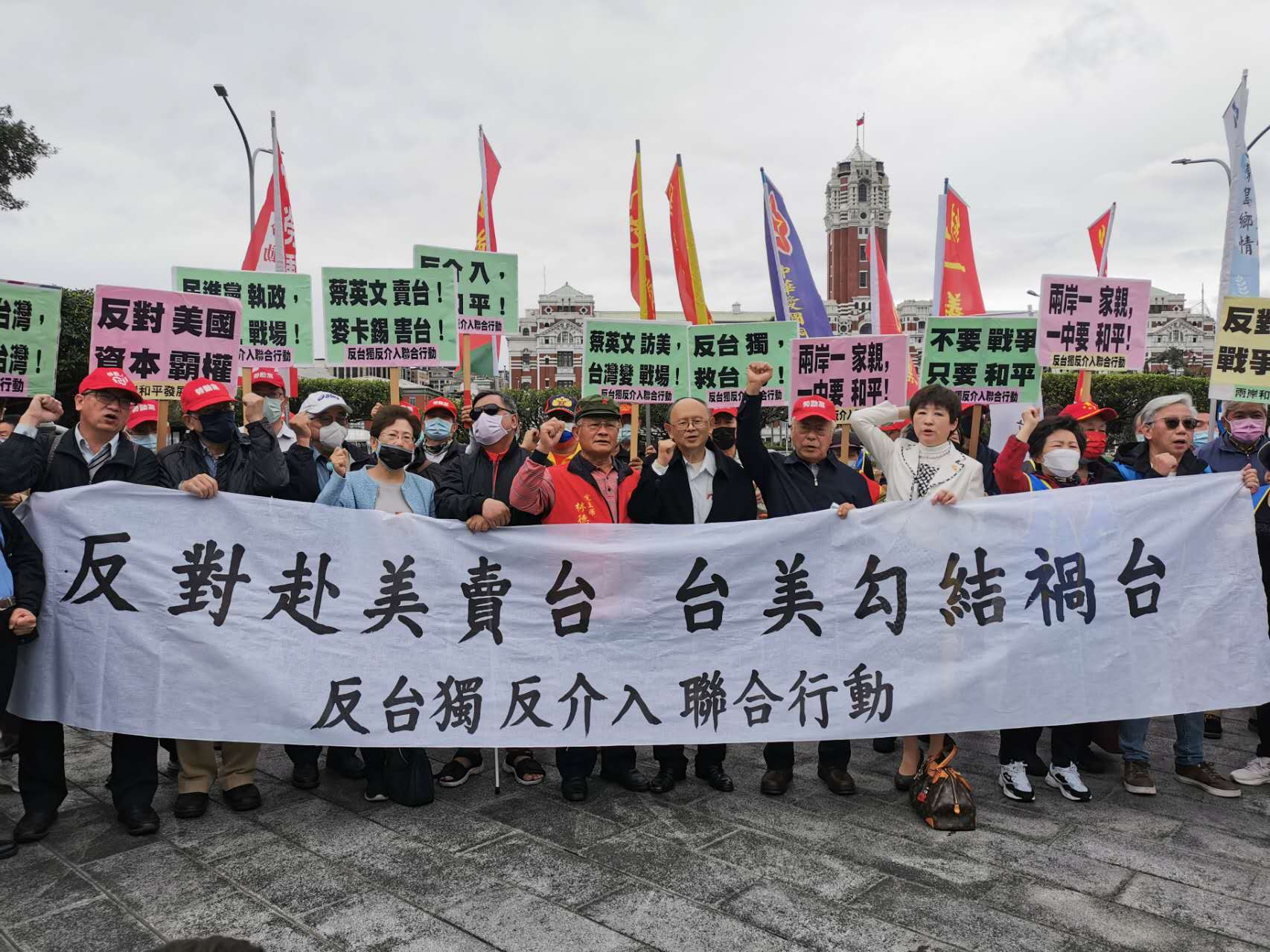 ‧ 數十個統派政團赴總統府 抗議蔡英文赴美賣台禍台