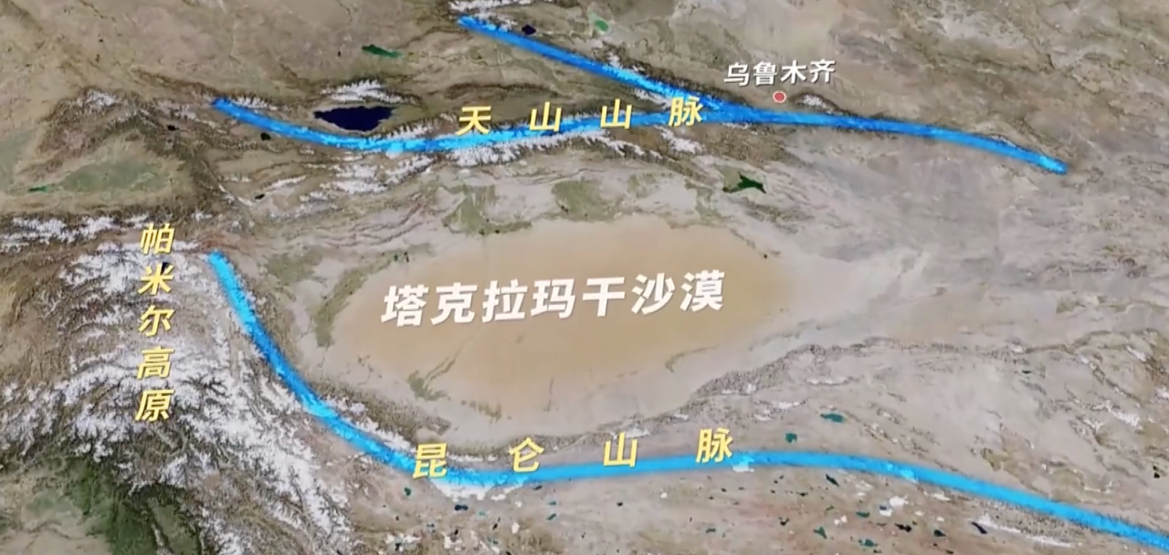 塔克拉瑪干沙漠被「包圍」的示意圖。圖源:一懷融媒