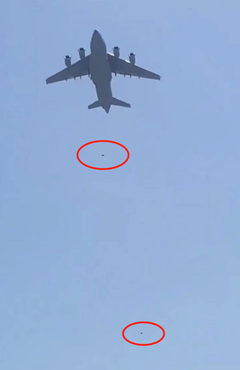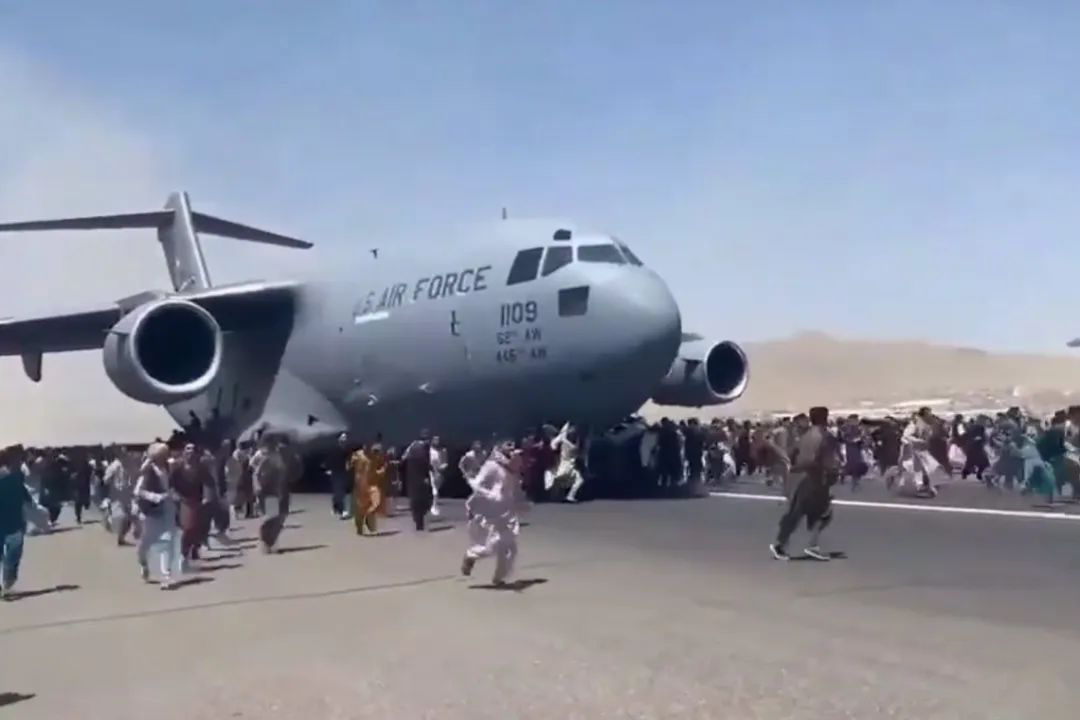 這中間,還發生了痛心的一幕幕。一架C17起飛時,多名阿富汗平民被碾壓喪生;還有一次C17飛到半空,兩個人影,像螞蟻一樣從空中跌落身亡……