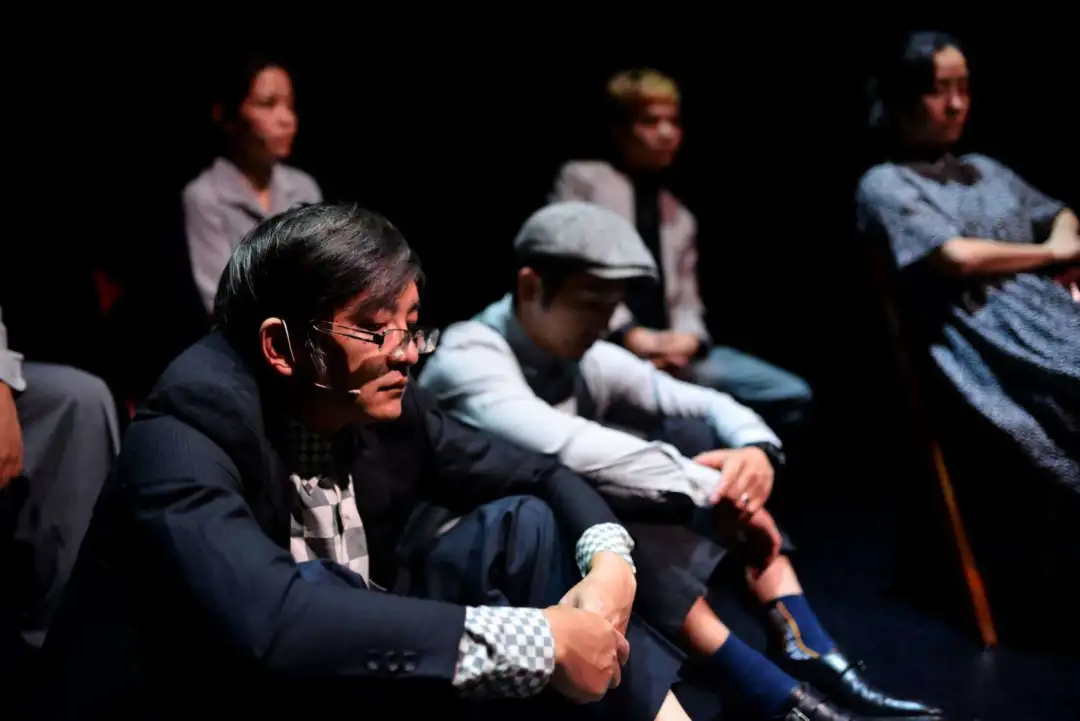 《范天寒和他的弟兄們》演出劇照(攝影:郭盈秀)客家是移動的族群,在時間的長河中,因著流動而生果敢、生猛之性,或可轉作「硬頸子弟」的非刻板描述;也因著在流動中,殷盼紮根的需求,而注重家族的傳承。兩者交相辯證,在台灣民粹政治的夾縫間求生存,常遭汙名化為投靠官方的「義民」。這是客家運動30年,最值得反思的結構性觀點。可以說,是在這樣繁複的,對於劇場如何在時間中,以當下的身影,迎向或突而慘遭記憶滅頂的錯綜下,稱作 《范天寒與他的弟兄們》這齣戲從誕生、難產以至於歷經波折,而每一段的波折,都如同潛藏在激流中的紋路般,不動聲色,卻令人屏息。