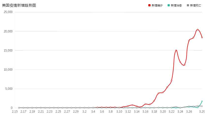 說完了中國,我們還是把目光轉向每天確診暴增2萬人的美國。
